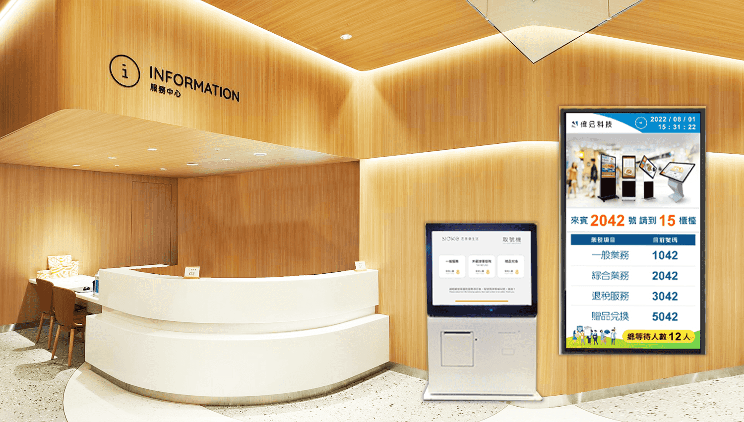從櫃檯排隊叫號系統整合到文件E化管理;透過多媒體廣告播放系統與互動導覽系統行銷導覽介紹。