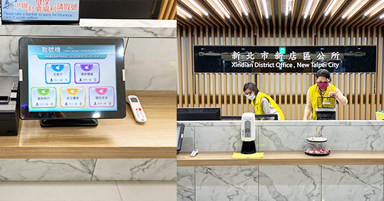 - 使用E即辦排隊叫號系統,民眾使用取號機取號,櫃檯透過多媒體公播分流叫號,縮短民眾申辦時間。